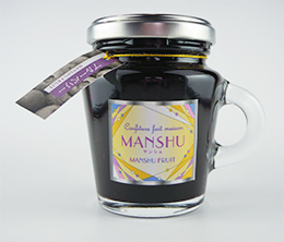 ブルーベリー事業部の大粒ブルーベリーを瓶にぎっしり詰め込んでいます。スプーンがゴロゴロ果実に引っかかって奥まで入いらないほど。1粒1粒がブルーベリーの味がするジャムです。